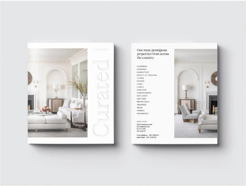 Additionally, Curated is an extensive communication tool within the Luxury Division aimed at amplifying the presentation of luxury properties. Through a hand-crafted newsletter, Curated Portfolio, and a specialized periodical, Curated Magazine, luxury listings from across the country are sent to a growing network of top Compass agents, selected external agents with luxury experience, and high-profile clientele.